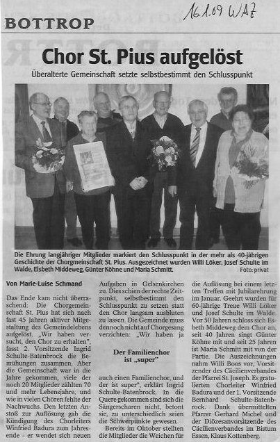 WAZ-Zeitungsartikel zur Auflösung der Chorgemeinschaft mit einem
