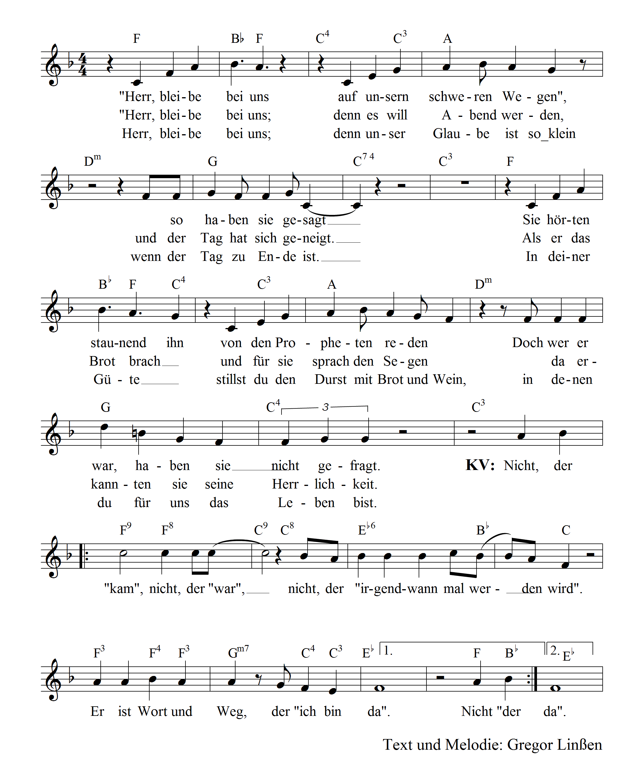 Das Lied "*Herr, bleibe bei uns*" habe ich in Capella neu gesetzt (s.